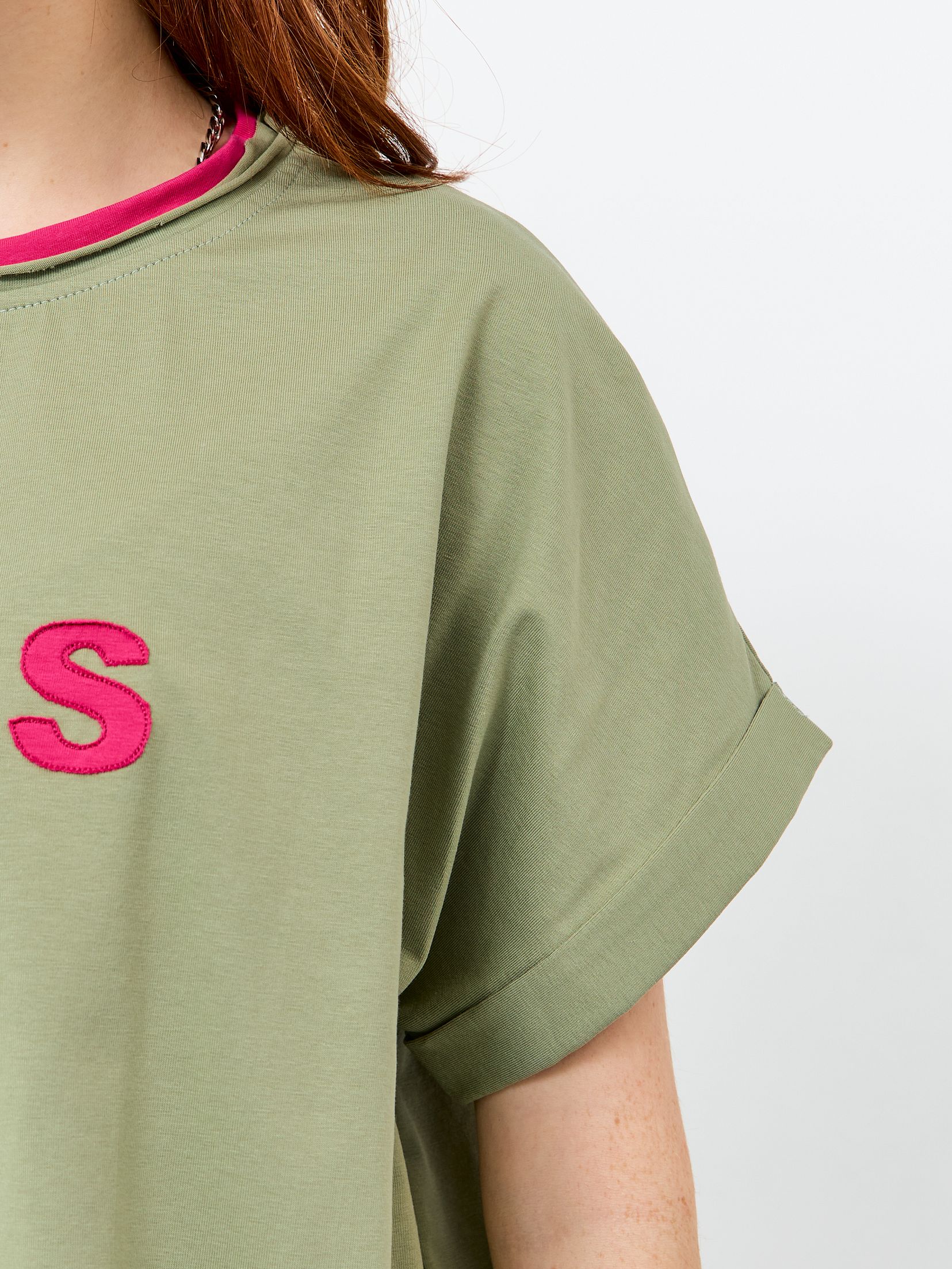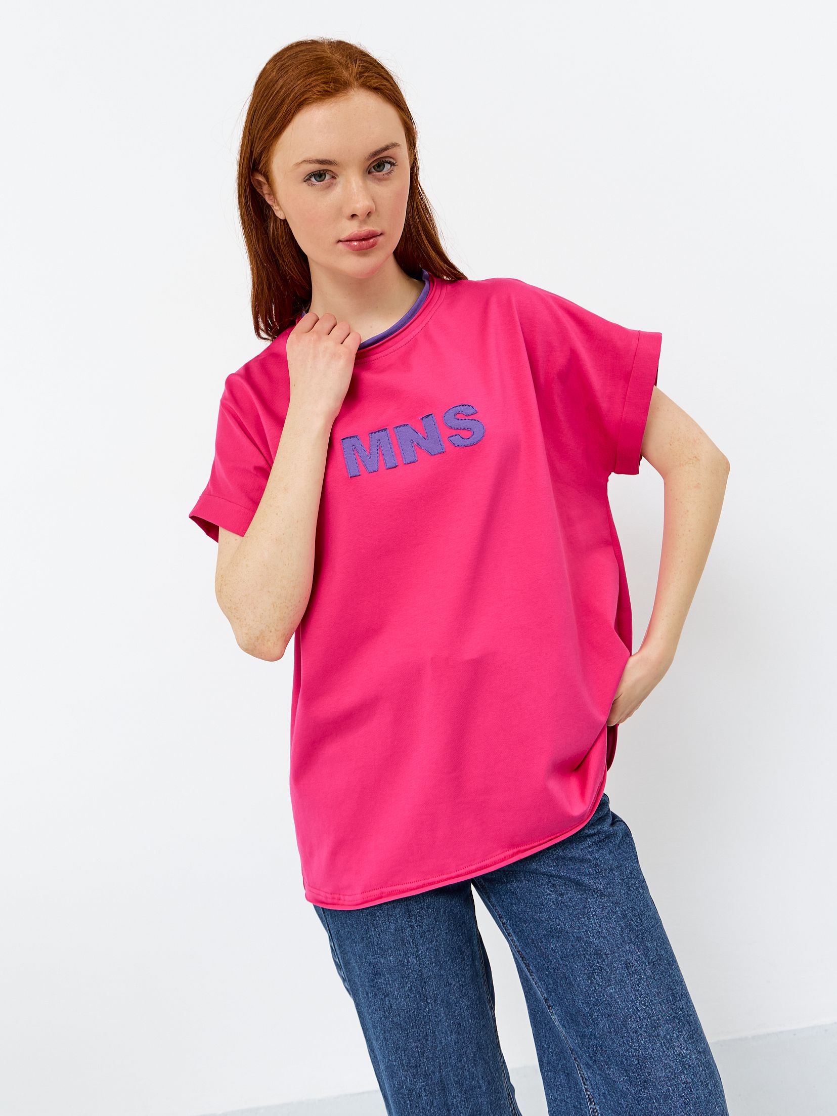 Стильный и комфортный выбор для вашего летнего гардероба. Футболка выполнена из высококачественного хлопка с добавлением эластана, что обеспечивает мягкость, комфорт и долговечность изделия. Оверсайз силуэт и удлиненная длина придают модели непринужденный и модный вид, а круглый вырез и укороченный рукав добавляют комфорт и функциональность. Приятное сочетание цветов ярко выделяют футболку на фоне повседневной одежды. Футболка декорирована оригинальной аппликацией, в виде принта MNS (логотип бренда одежды Mamanonstop), что делает ее уникальной и запоминающейся. Товар сертифицирован и произведен в России на собственном производстве.